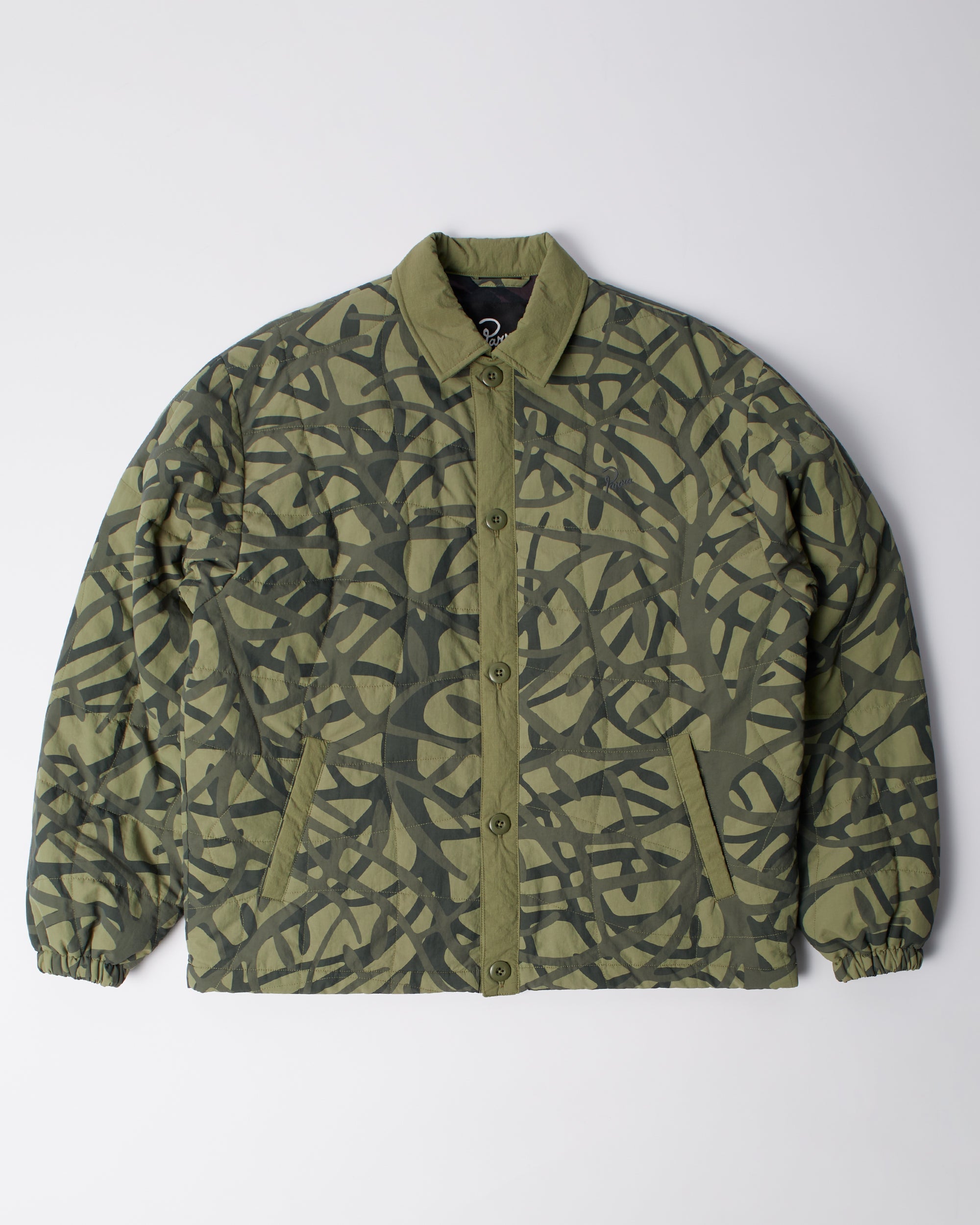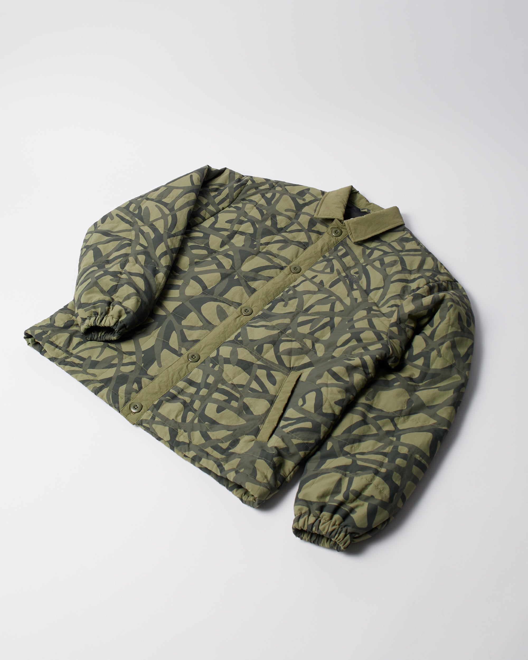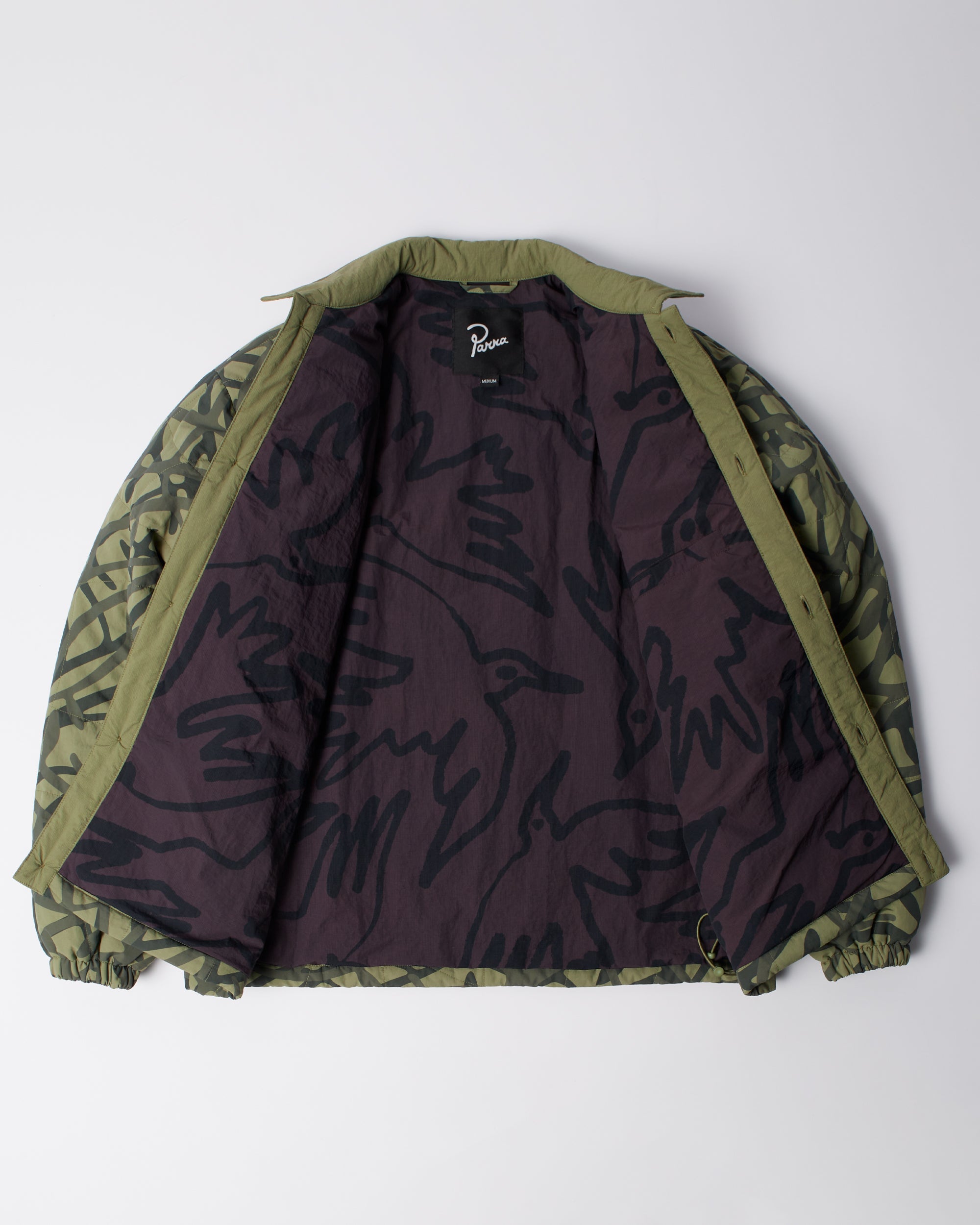 All-over custom printed and custom-waved quilted jacket. All-over "Freak scene" printed ripstop lining. Relaxed, boxy fit.