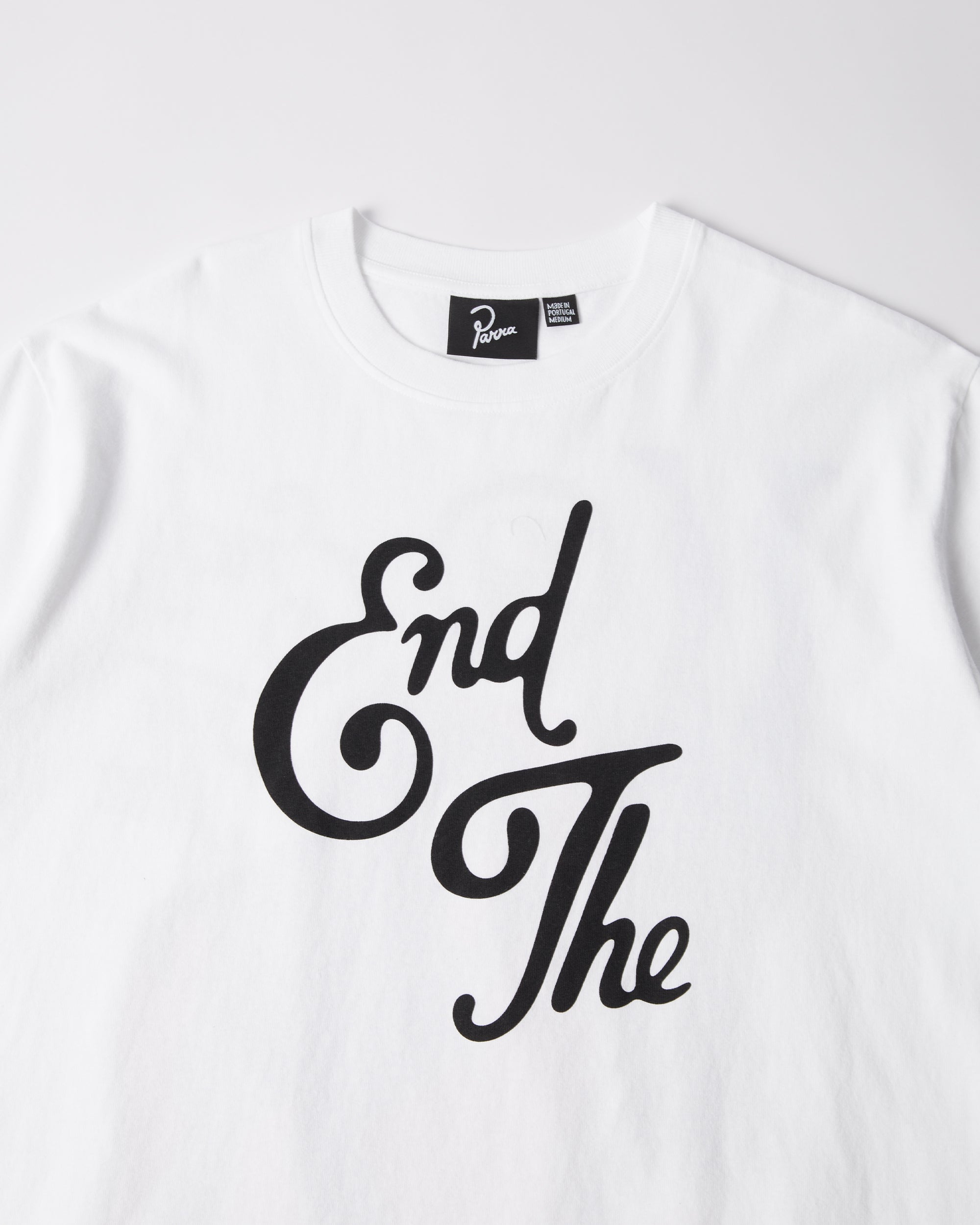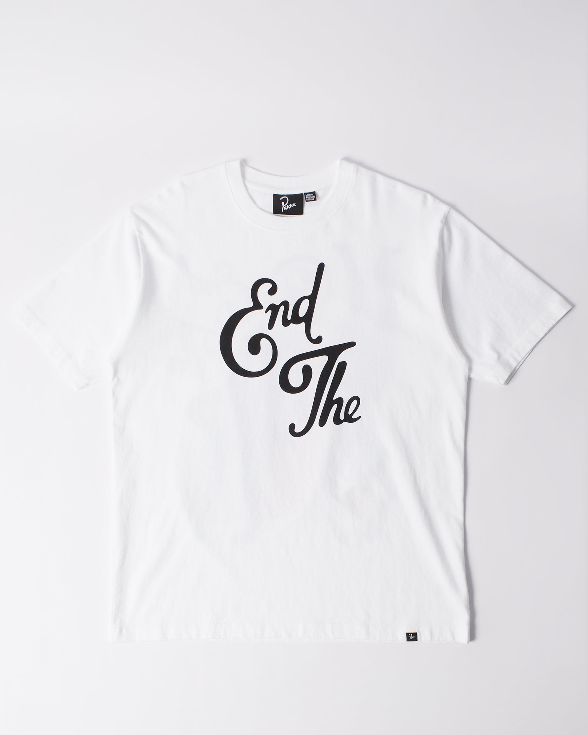 Printed on the back with "End the loungechair" artwork and big "End the" logo printed on the front. All by Parra tees are a custom boxy fit.
