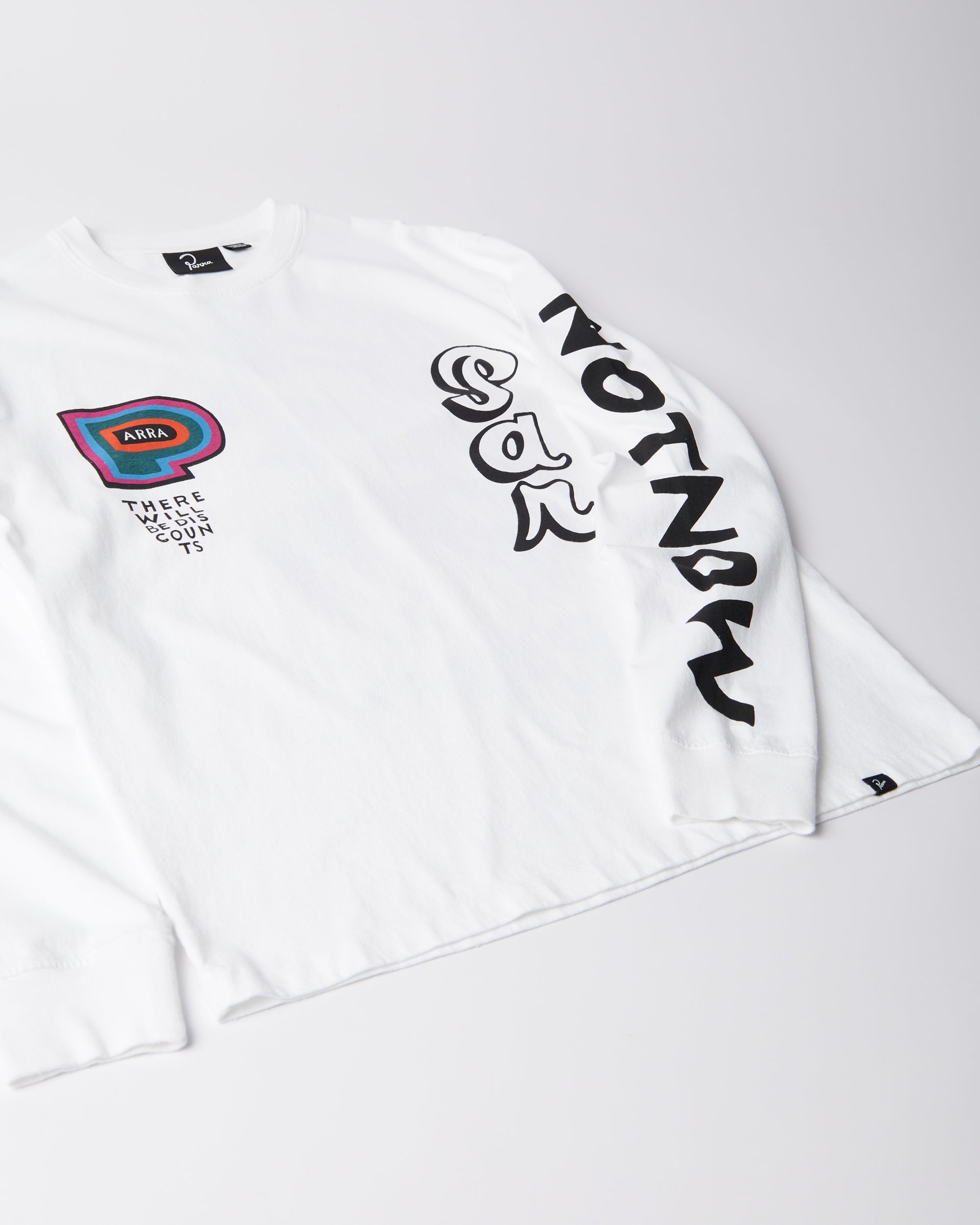 Water-based screen prints of different artworks by Parra all over. All Parra long sleeves have a boxy custom fit.